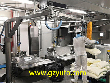 利樂(lè)包裝為明治遍布全球的工廠承建全密封自動(dòng)化生產(chǎn)線,可謂盡善盡美。 但是,投料工序卻成為了致命的短板。 由于投料口位于夾層, 上方管線密布, 頂部高度僅2米。地板用3毫米的不銹鋼板拼焊而成,作業(yè)面積不足6平米。 在這樣狹窄的空間, 任何自動(dòng)化設(shè)備都無(wú)能為力。