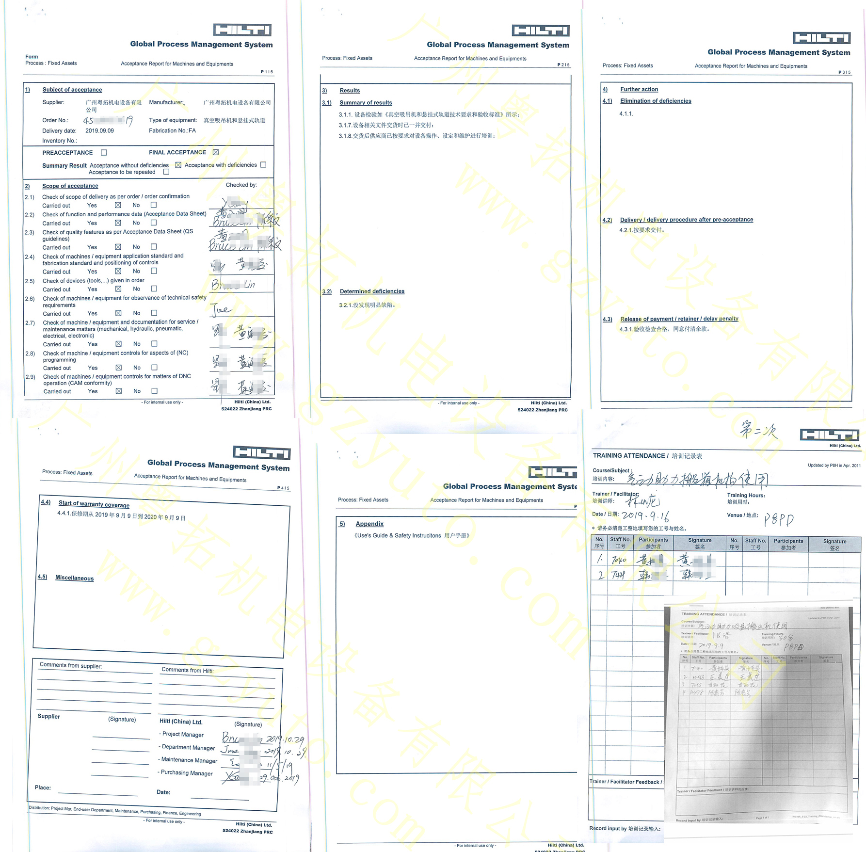 我們的客戶大多是世界一流的公司, 都是各個(gè)行業(yè)的翹楚。 按照流程, 設(shè)備安裝調(diào)試培訓(xùn)交付使用之后, 通常在1個(gè)月內(nèi)安排驗(yàn)收。 客戶驗(yàn)收過程我們偶爾會(huì)參與, 然而具體的步驟及內(nèi)容我們并不清楚。 客戶通知說設(shè)備已驗(yàn)收, 我們就開發(fā)票, 然后等待收尾款。 我們設(shè)備的工藝、質(zhì)量、性能、人性化設(shè)計(jì)等各個(gè)方面都達(dá)到甚至超過進(jìn)口品牌的水平。 因此, 得到了所有客戶的一致認(rèn)可。每次都是一次驗(yàn)收通過, 沒有遇到要求我們整改或者返修的個(gè)案。